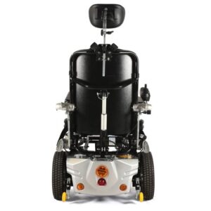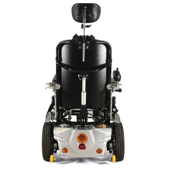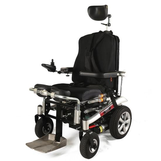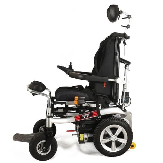 Hλεκτρικό αµαξίδιο µε ηλεκτρική ορθοστάτιση. Μοντέρνος σχεδιασµός. ∆ιαθέτει ηλεκτρική ανάκλιση πλάτης, ηλεκτρική ανύψωση υποποδίων και ηλεκτρική ρύθµιση γωνίας κλίσης καθίσµατος “Tilt”. Εργονοµικός βραχίονας µε διαµορφούµενο στήριγµα κεφαλής. Zώνη τεσσάρων σηµείων ασφαλείας. Το χειριστήριο µπορεί να τοποθετηθεί αµφίπλευρα. Φώτα τύπου “LED” ελεγχόµενα από το χειριστήριο.