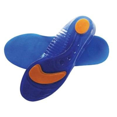 Πέλμα κατασκευασμένo από πολυμερές extra soft gel, υψηλής ποιότητας και αντοχής. Ειδικός σχεδιασμός με μαλακότερο gel πορτοκαλί χρώματος αποκλειστικά για την περιοχή της πτέρνας και του μεταταρσίου. Διαθέτει ενσωματωμένη ελαφριά ανύψωση στην περιοχή της καμάρας, προσφέροντας ισομερή αποφόρτιση των πιέσων.